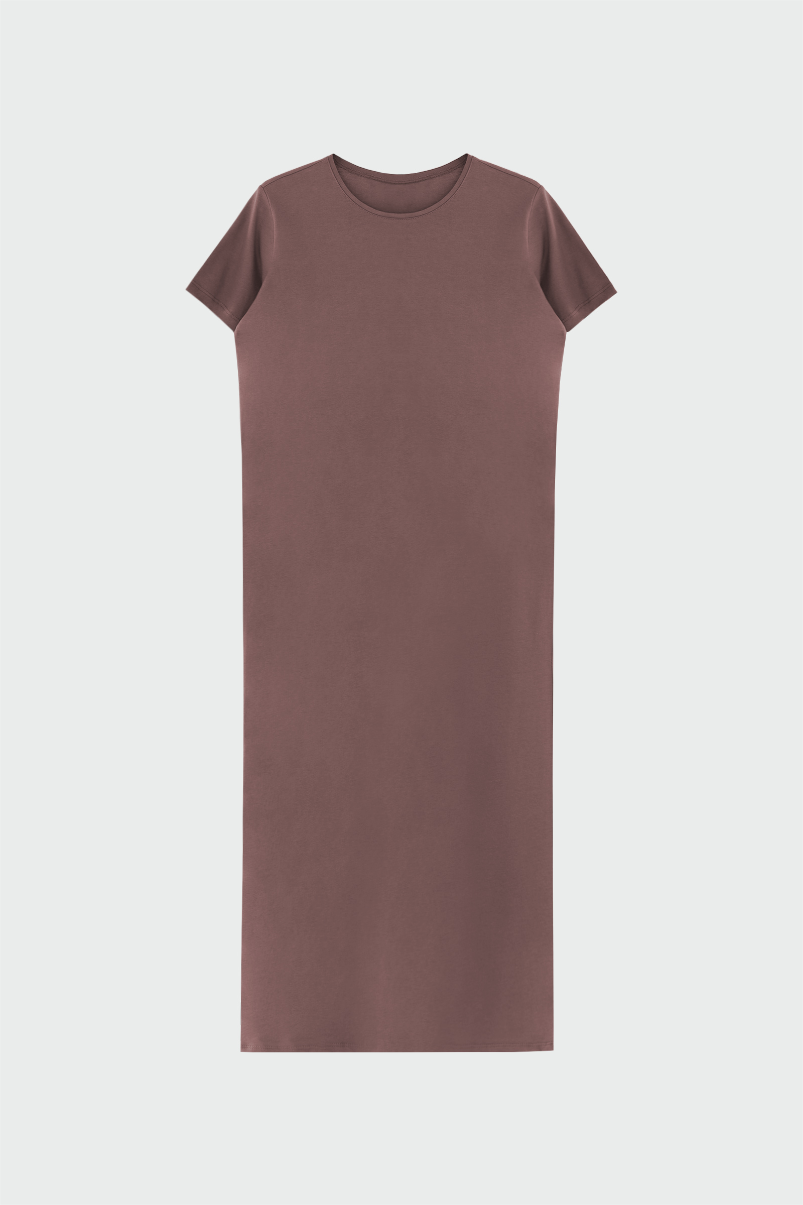 Bisiklet yaka, midi boy, pamuklu basic elbise.