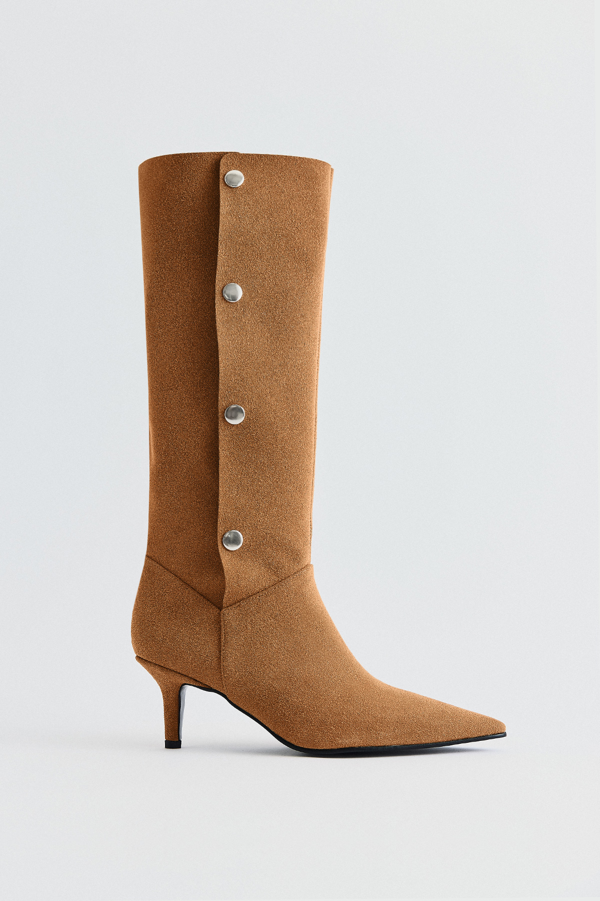 Sivri Burun Çıtçıt Kapamalı Camel Süet Kadın Çizme