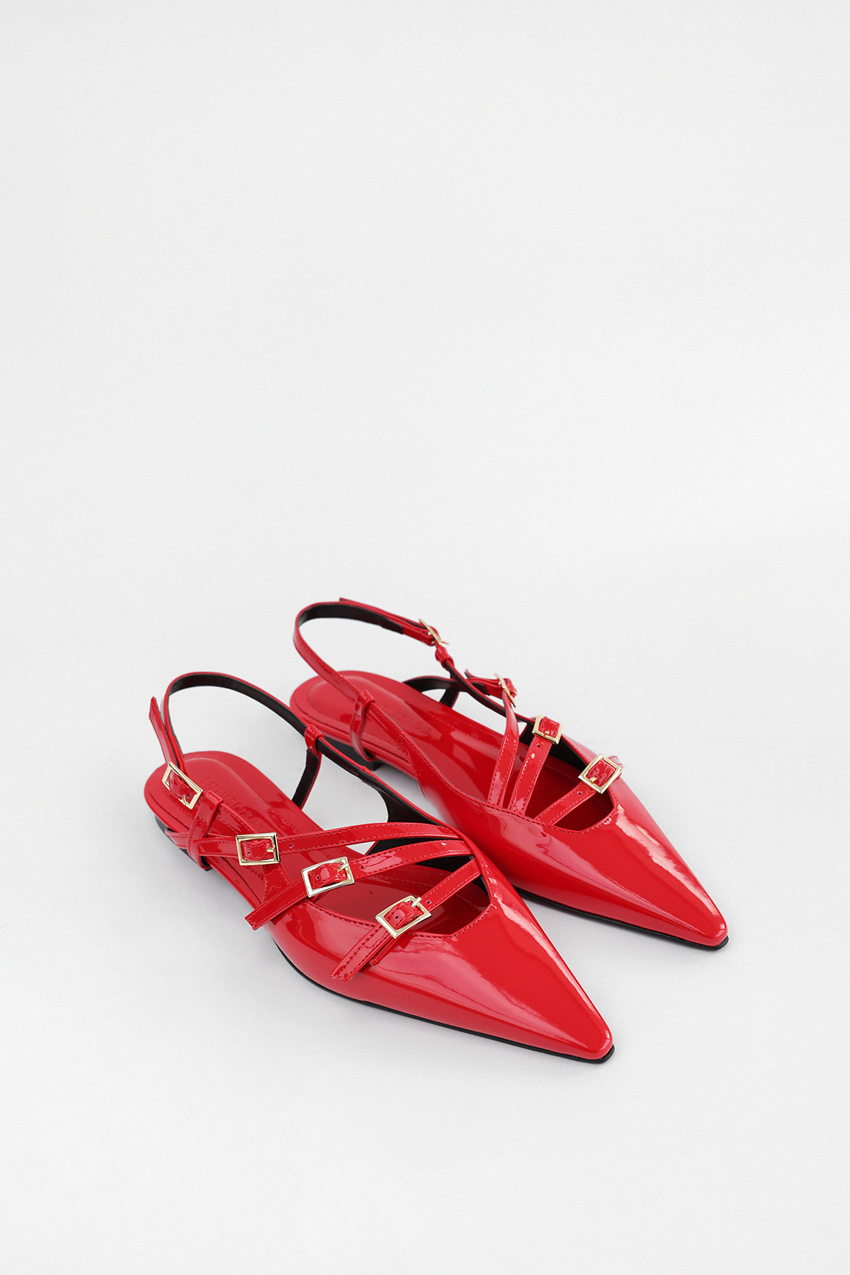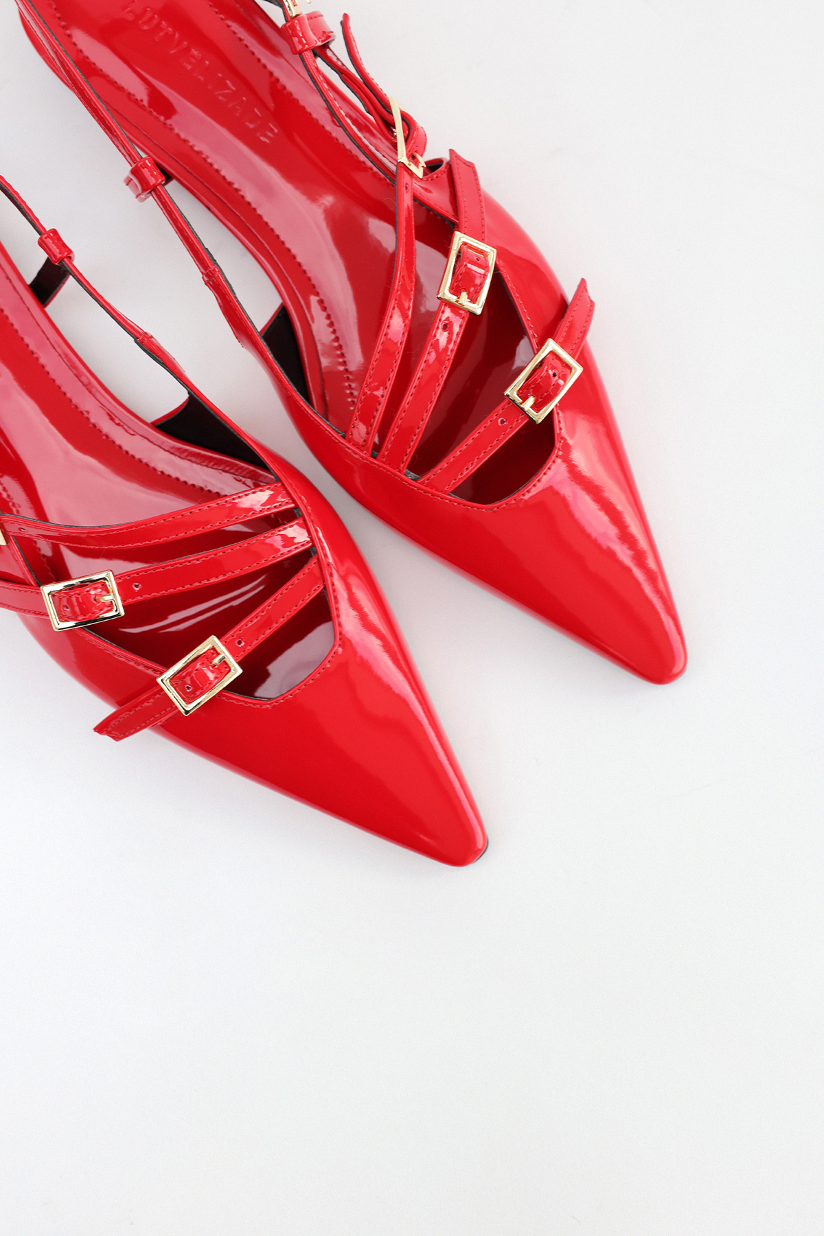 Sivri Burun Üç Bantlı Kırmızı Rugan Kadın Babet